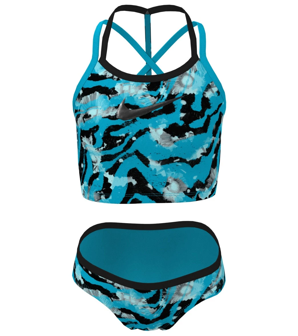 In the pool or on the beach, this versatile girls’ midkini swimsuit from Nike is ready to make a splash. The Nike Girls’ Watercolor Two Piece Midkini Set (Big Kid) is made from soft fabric and the fit is enhanced specifically for young athletes.