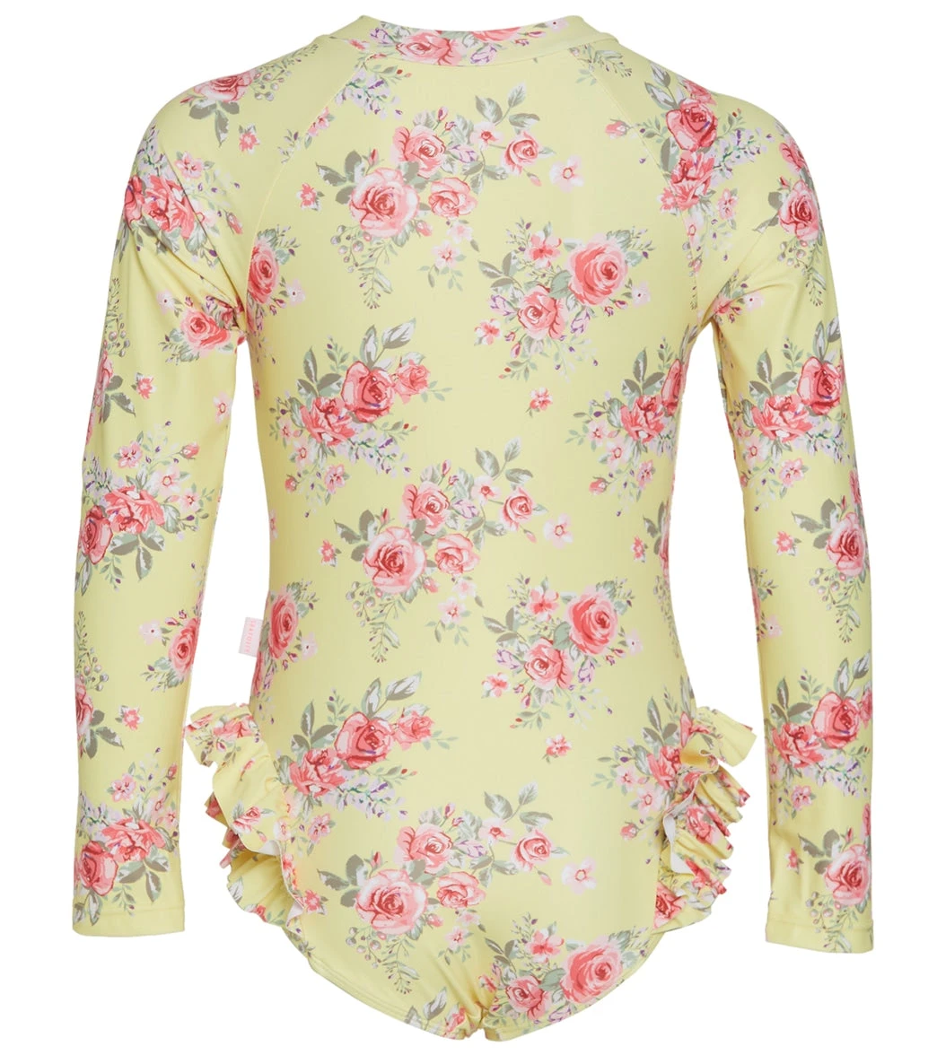 Play in the sand in the Seafolly Girls’ Paradise Garden Long Sleeve One Piece Swimsuit (Baby, Toddler, Little Kid)
