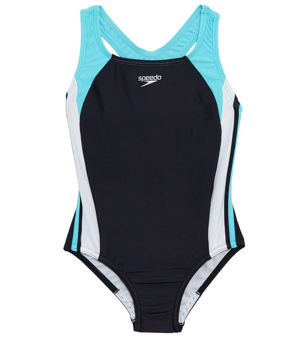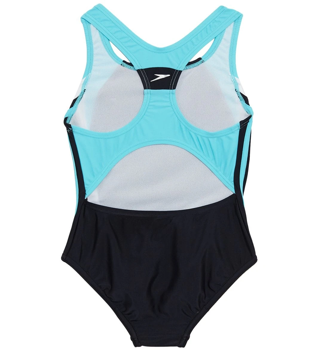 With vibrant colors and a fun back cutout design, the Speedo Girls’ Solid Infinity Splice One Piece Swimsuit (Big Kid) is a comfortable, cool choice.
