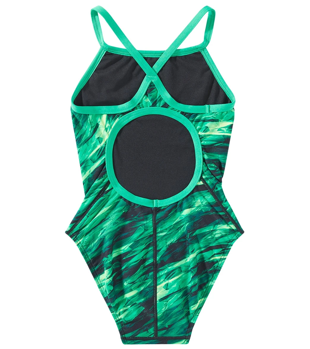 Look cool while making laps in the TYR Girls’ Vitric Diamondfit One Piece Swimsuit.
